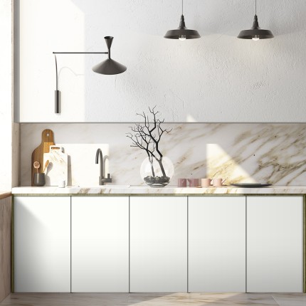Clean white solid color laminate provides versatile, minimalist backdrop for modern kitchens and contemporary interiors. Timeless simplicity meets functional design.