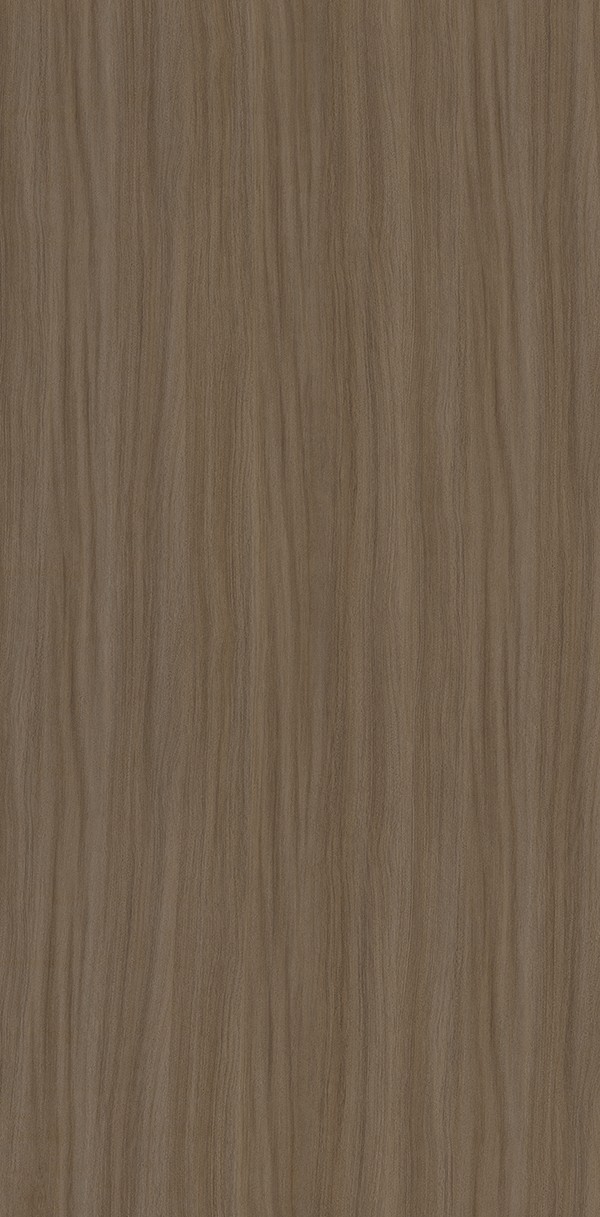 Rich cocoa brown laminate with high-gloss finish and vertical silkwood texture, perfect for sophisticated modern interior designs.
