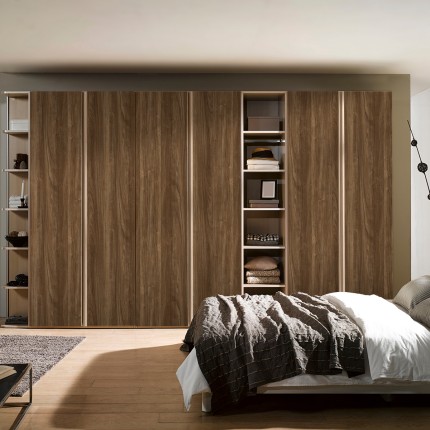 Premium olmo walnut laminate featuring rich mahogany undertones and sophisticated linear grain architecture. Delivers luxurious warmth and artisanal texture for contemporary spaces, creating intimate environments with timeless natural elegance.
